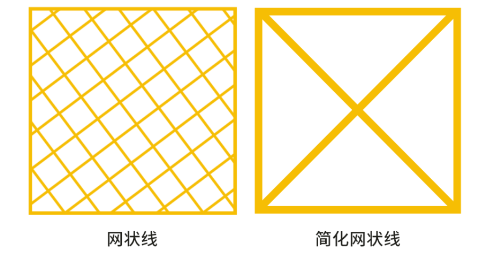 网状线也称黄网线、黄方格,《道路交通标志和标线》(GR5768-2009)中规定,网状线指用以标示禁止以任何原因停车的区域,视需要划设于易发生临时停车造成拥堵的交叉路口、出入口及需要设置的路段,通常有网状线、简化网状线两种。