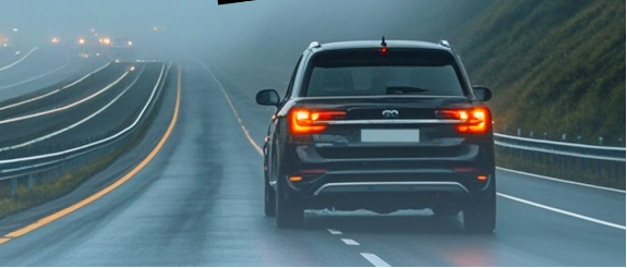 驾车进入团雾区域,应保持冷静,减速行驶: