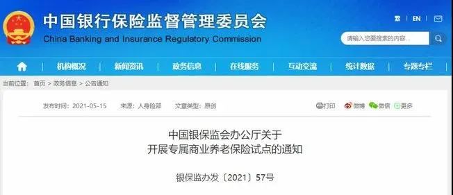 5月15日,银保监会发布《开展专属商业养老保险试点的通知》宣布:于6月在浙江和重庆开展专属商业养老保险试点,试点期限暂定一年,并且落实了专属商业养老保险的具体方案。
