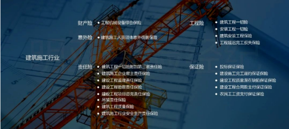 建筑施工行业的保险种类繁多:有财产险、意外险、责任险、工程险、保证险,每个细分的险种底下都有对应保险。