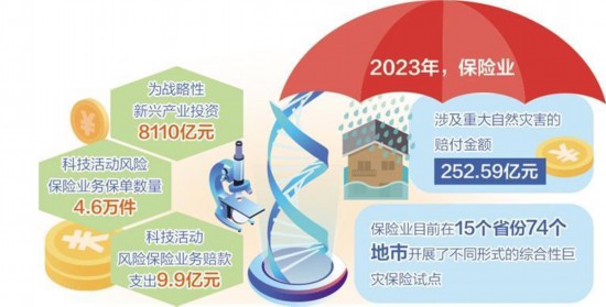 中国保险行业协会近期发布《2023中国保险业社会责任报告》,介绍了保险业去年在履行社会责任方面的情况。中国保险行业协会党委书记、会长于华表示,保险业认真落实做好金融“五篇大文章”要求,在服务中国式现代化过程中,充分发挥了经济减震器和社会稳定器功能。
