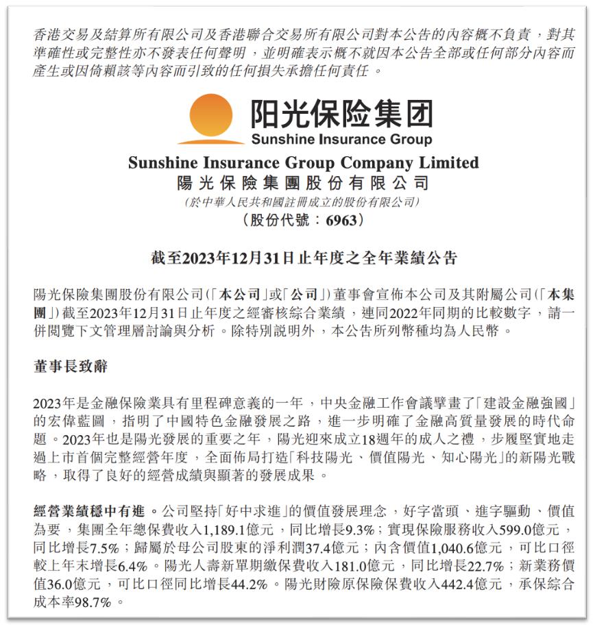 金融科技赋能业务,给阳光保险带来了不错的业绩表现。